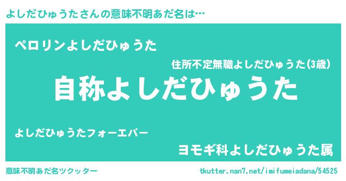 | 男性向けラノベタイトル風あだ名 | 『Re:よしだひゅうたから始める異世界生活』 |