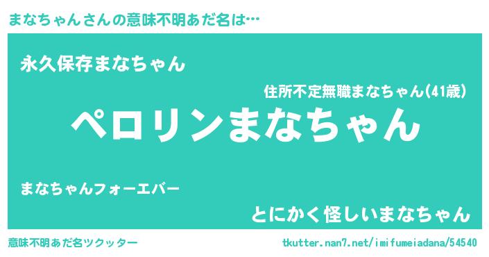 | ヒーロー風カッコイイあだ名 | 『スーパーマナチャン』『ネオマナチャン』 |