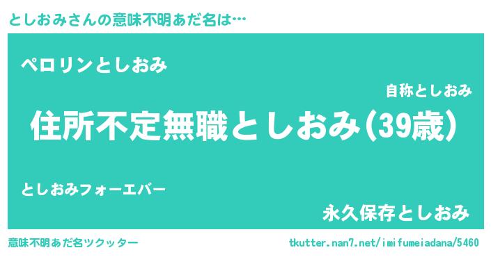 | 男性向けラノベタイトル風あだ名 | 『この素晴らしい世界にとしおみを!』 |
