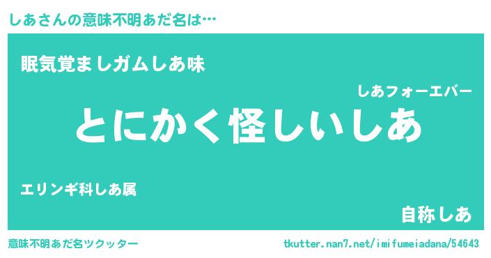 | ヘコむあだ名 | 『しあっぺ』『なまこ酢』『しあ(笑)』 |