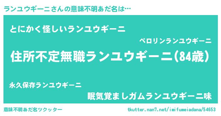 | 料理風あだ名 | 『ランユウギーニのカルパッチョ風』 |