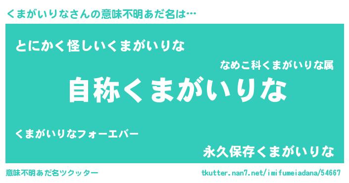 | 女子向けラノベタイトル風あだ名 | 『くまがいりななんてお断りですっ。』 |