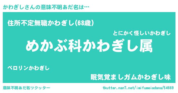 | ヒーロー風カッコイイあだ名 | 『仮面カワダー』『慈愛の使者かわぎし』 |