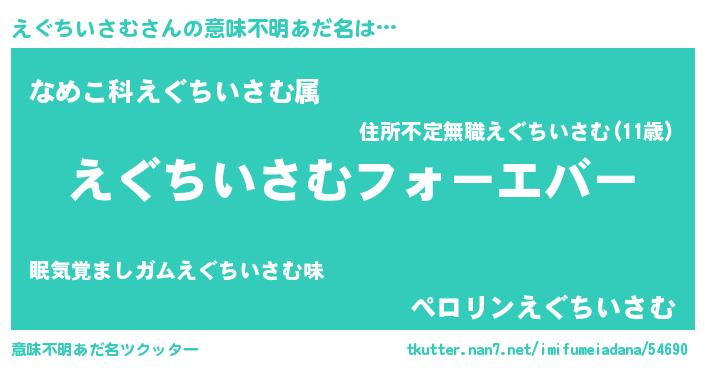 | 欧米人風あだ名 | 『えぐちいさむクリステル』 |
