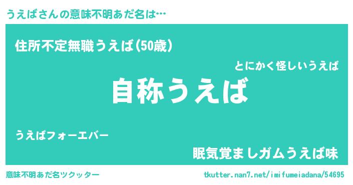 | 欧米人風あだ名 | 『アンジェラ・うえば』『ダニエルうえば』 |