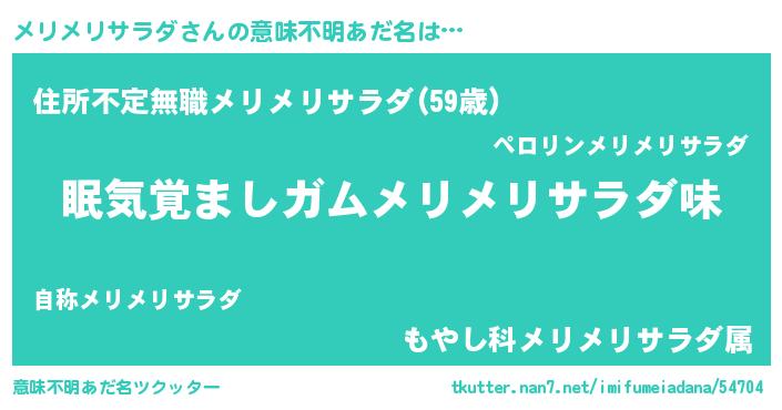| 欧米人風あだ名 | 『ダニエルメリメリサラダ』 |