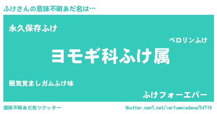| ヘコむあだ名 | 『ふけ(震え声)』『牛乳』『ふけ太郎』 |