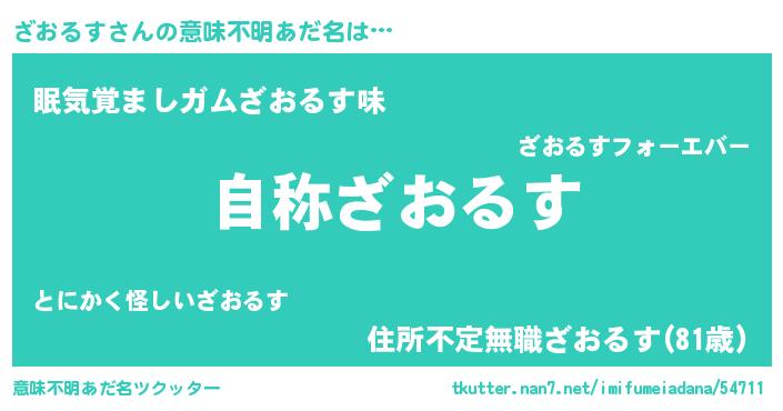 | 男性向けラノベタイトル風あだ名 | 『Re:ざおるすから始める異世界生活』 |
