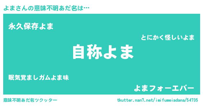 | ヘコむあだ名 | 『よま(笑)』『牛乳』『よまお』 |