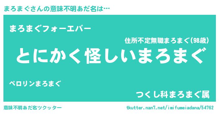 | 女子向けラノベタイトル風あだ名 | 『まろまぐの卵を拾いまして』 |