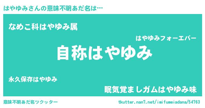 | 男性向けラノベタイトル風あだ名 | 『Re:はやゆみから始める異世界生活』 |