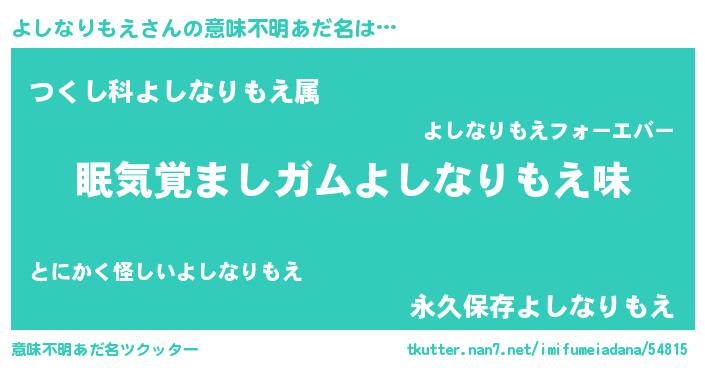 | ヘコむあだ名 | 『よしなりもえ(笑)』『酢こんぶ』 |