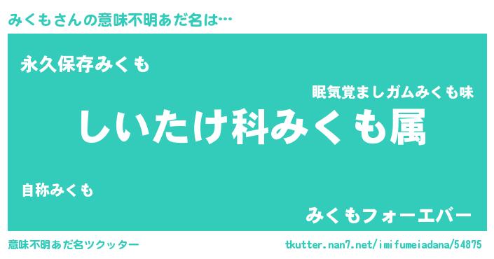 | ヘコむあだ名 | 『みくも(小並感)』『つくし』 |