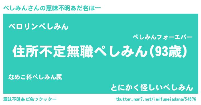 | 男性向けラノベタイトル風あだ名 | 『魔弾の王とぺしみん』『ぺしみんの憂鬱』 |