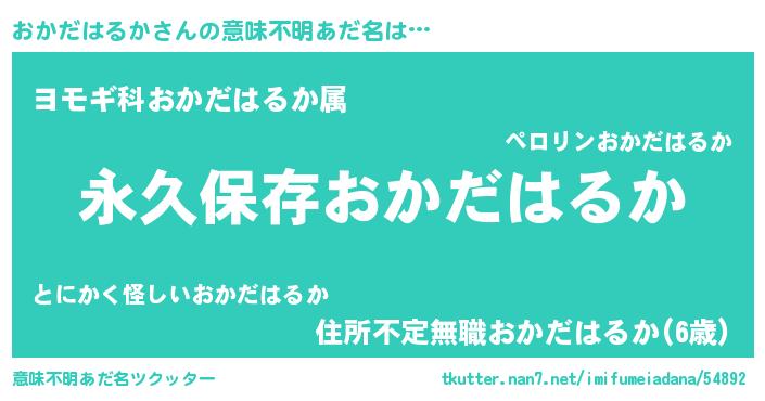 | ヘコむあだ名 | 『おかだはるか(爆)』『おかにー』 |