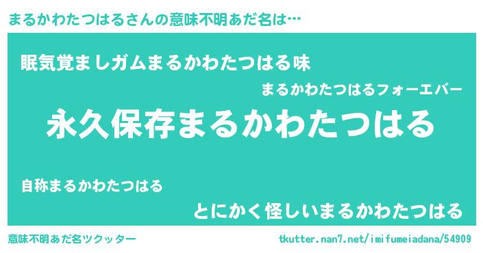 | ヘコむあだ名 | 『まるかわたつはる(小並感)』『まるぷりん』 |