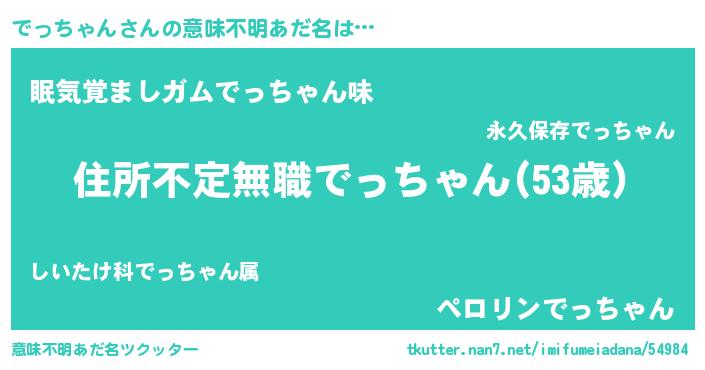 | 女子向けラノベタイトル風あだ名 | 『シンデレラでっちゃん家の靴箱館』 |