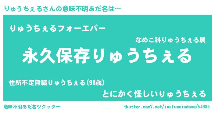 | 男性向けラノベタイトル風あだ名 | 『りゅうちぇるという概念が存在しない退屈な世界 』 |
