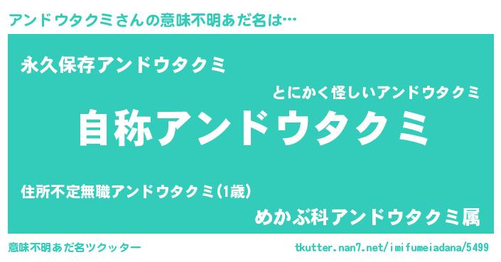 | 欧米人風あだ名 | 『アンジェラ・アンドウタクミ』 |