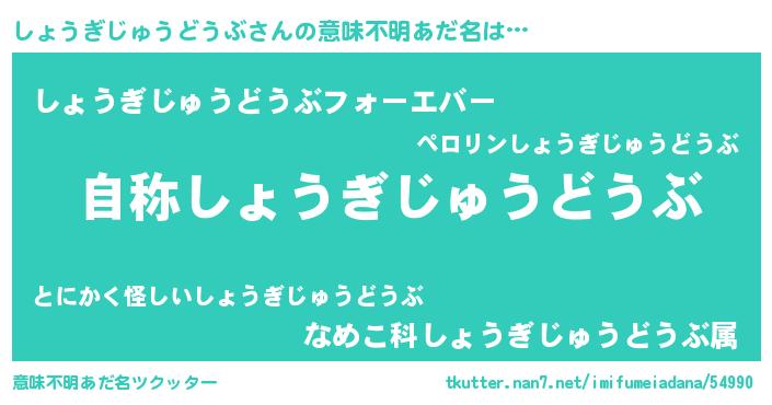 | 男性向けラノベタイトル風あだ名 | 『はたらくしょうぎじゅうどうぶさま!』 |