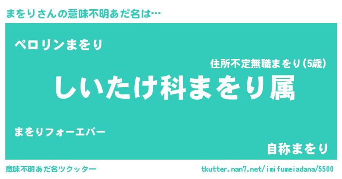 | 男性向けラノベタイトル風あだ名 | 『マヲリスレイヤー』『まをりの憂鬱』 |