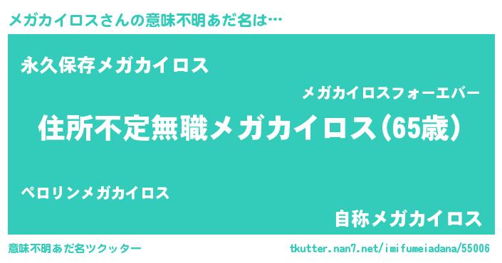 | 男性向けラノベタイトル風あだ名 | 『この素晴らしい世界にメガカイロスを!』 |