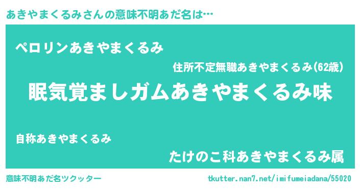 ヘコむあだ名 | 『あきにゅー』『あきやまくるみ(笑)』 |