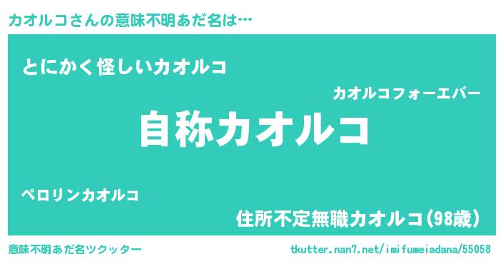 | 男性向けラノベタイトル風あだ名 | 『Re:カオルコから始める異世界生活』 |
