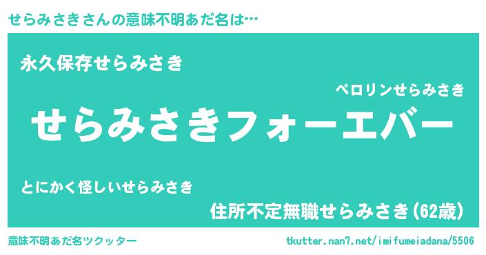 | 肩書あだ名 | 『せらみさき大統領』『せらみさき先生』 |