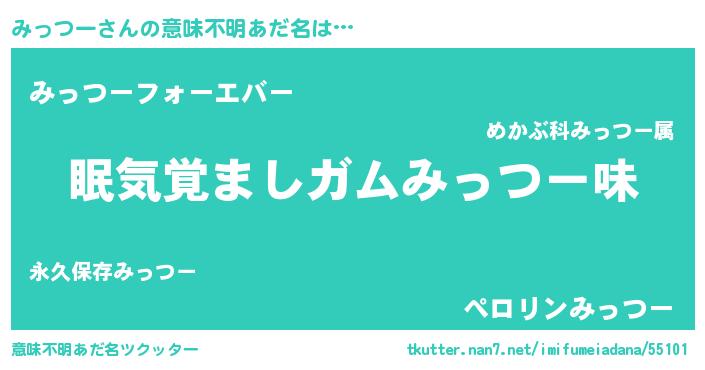 | 女子向けラノベタイトル風あだ名 | 『みっつー恋絵巻』『みっつーの婚約者』 |