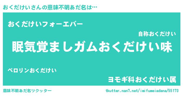 | 欧米人風あだ名 | 『おくだけい・ステッグマイヤー』 |