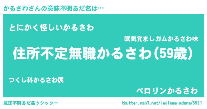 | 男性向けラノベタイトル風あだ名 | 『この素晴らしい世界にかるさわを!』 |