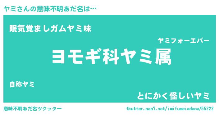 | ヒーロー風カッコイイあだ名 | 『天空の使者ヤミ』『幻影騎士ヤミ』 |