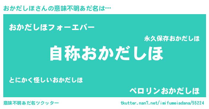 | 男性向けラノベタイトル風あだ名 | 『Re:おかだしほから始める異世界生活』 |