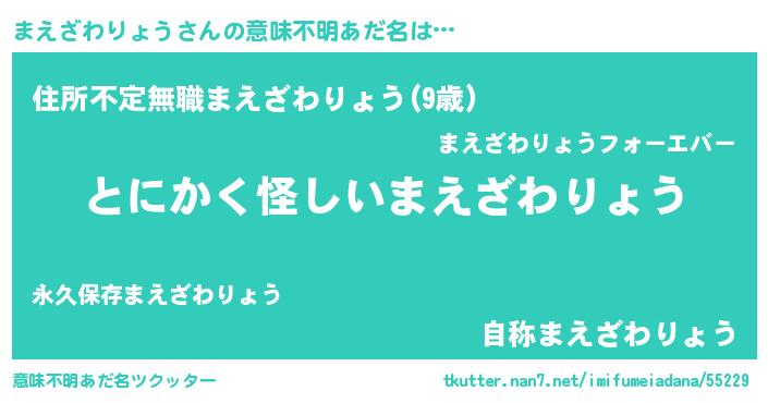 | 女子向けラノベタイトル風あだ名 | 『まえざわりょうの卵を拾いまして』 |