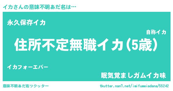 | ヘコむあだ名 | 『イカ(小並感)』『酢こんぶ』 |