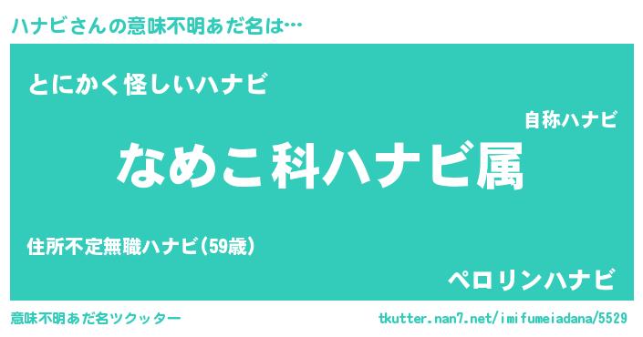 | ヘコむあだ名 | 『ハナ太郎』『ハナにー』『なまこ酢』 |