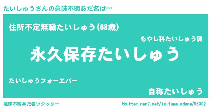 | 胡散臭い通販商品みたいなあだ名 | 『来世でも幸せになれる水素水…その名も「たいしゅう」』 |