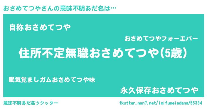 | ヘコむあだ名 | 『おさめてつや(小並感)』『豆乳』 |