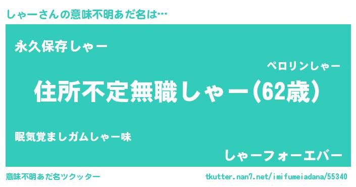 | 女子向けラノベタイトル風あだ名 | 『しゃーが死なない童話 林檎のしゃーの診療簿』 |