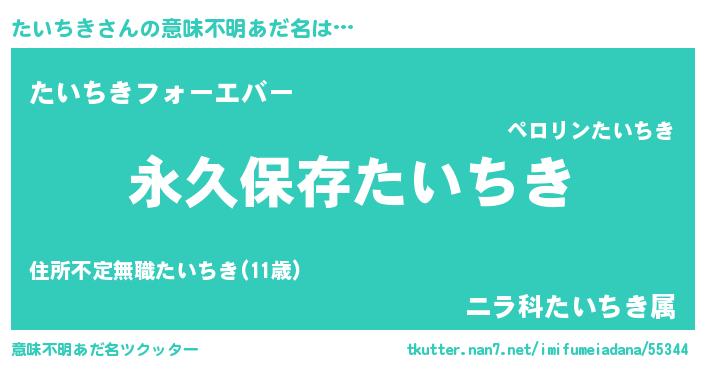 | 男性向けラノベタイトル風あだ名 | 『たいちきに滅ぼされるだけの簡単なお仕事です』 |