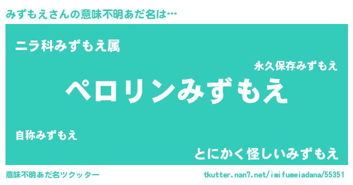 | 胡散臭い通販商品みたいなあだ名 | 『必ず成功するブレスレット…その名も「みずもえ」』 |