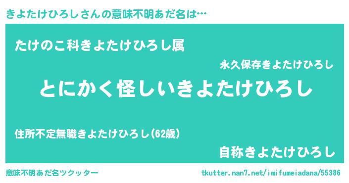 | 男性向けラノベタイトル風あだ名 | 『うちのきよたけひろしが世界を掌握している!』 |