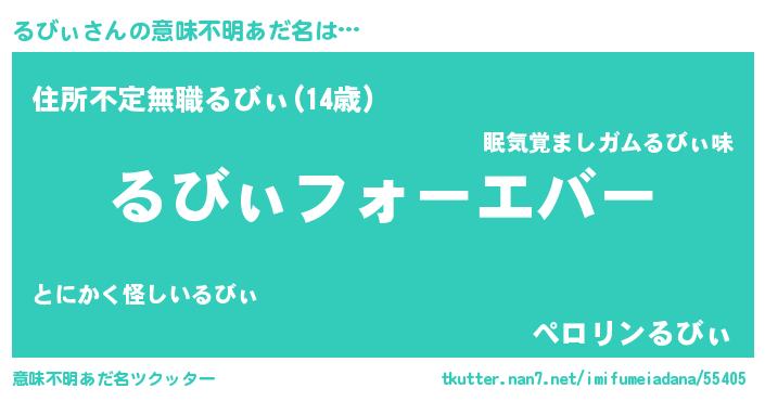 | 男性向けラノベタイトル風あだ名 | 『るびぃに滅ぼされるだけの簡単なお仕事です』 |