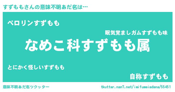 | 胡散臭い通販商品みたいなあだ名 | 『モテモテ間違いなし水晶球…その名も「すずもも」』 |