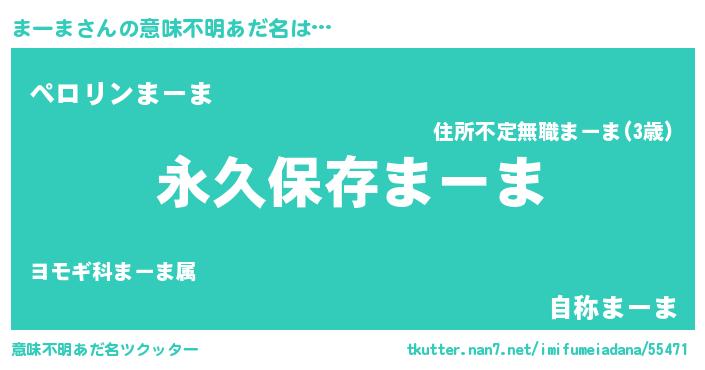 | 胡散臭い通販商品みたいなあだ名 | 『絶対に幸福をもたらす水素水…その名も「まーま」』 |