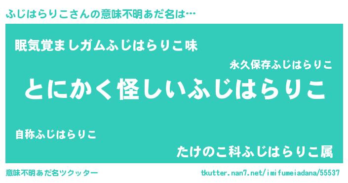 | ヘコむあだ名 | 『ふじっ子』『ふじはらりこ(小並感)』 |