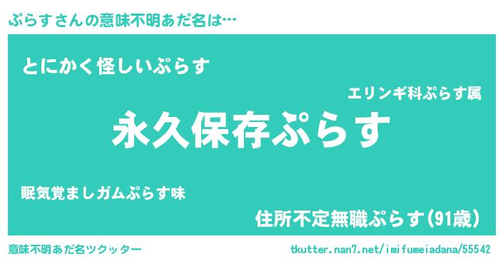 | 胡散臭い通販商品みたいなあだ名 | 『来世でも幸せになれる健康食品…その名も「ぷらす」』 |