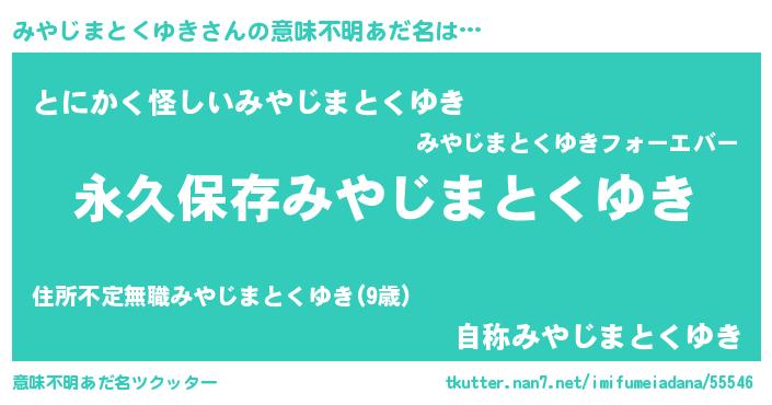 | 胡散臭い通販商品みたいなあだ名 | 『絶対に幸福をもたらす水素水…その名も「みやじまとくゆき」』 |