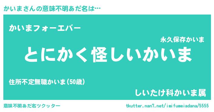 | ヒーロー風カッコイイあだ名 | 『炎刃騎士カイ』『ウルトラかいまマン』 |